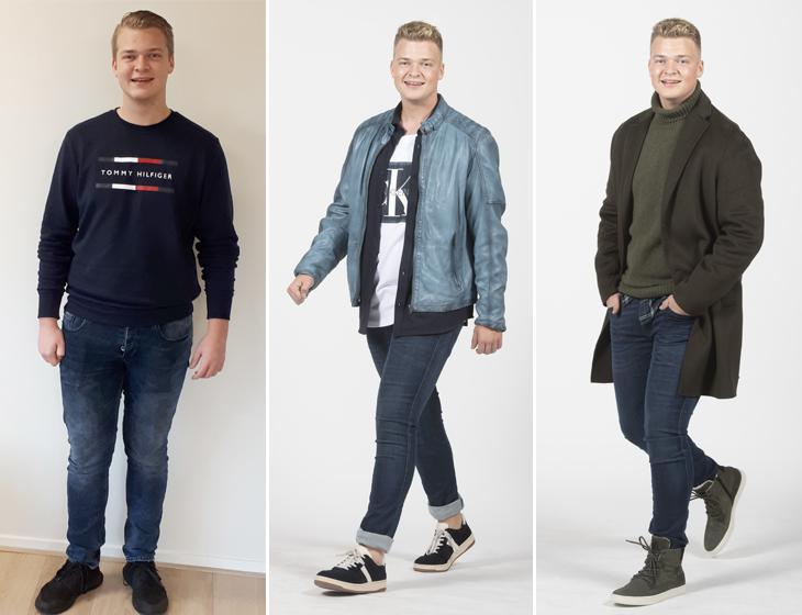 Hoewel hij de groene kleurstelling mooi vindt, is het blauw toch favoriet en zegt hij deze als set ook vaker te zullen dragen. Hij is verbaasd hoe alles hem in één keer als gegoten zit. De make-over vat hij heel mooi samen als: “Dingen die je zelf niet zou passen, maar die wel bij je passen.” Hij heeft ervan genoten. Op de foto’s is dat nog eens overduidelijk te zien.